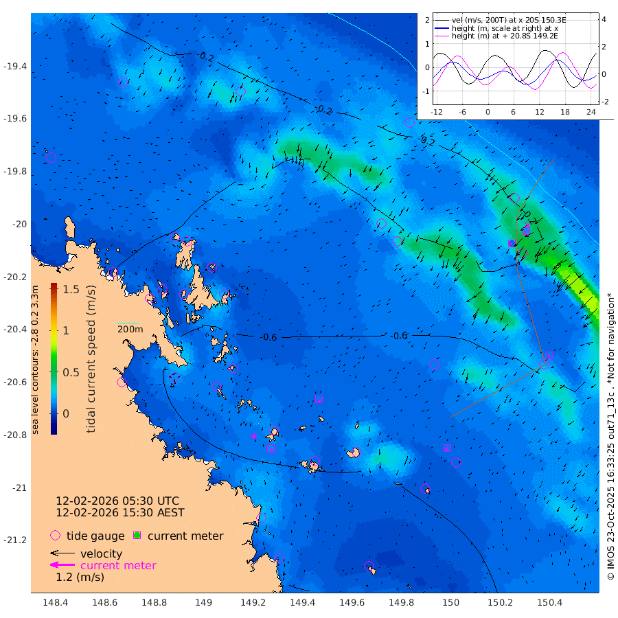 14cm/s 156T +10cm/s rms + 2cm/s 5T. Brampton I 18m 11cm/s -179T +9cm/s rms + 6cm/s 66T. Wigton I 38m 11cm/s -156T +7cm/s rms + 8cm/s 141T. Tern I 47m 14cm/s -150T +7cm/s rms + 12cm/s 54T. N Bugatti Rf 64m 8cm/s -115T +3cm/s rms + 13cm/s 178T. W Bugatti Rf 70m 11cm/s -142T +3cm/s rms + 3cm/s -130T. Creal Rf 69m -41cm Holbourne I -80cm Tern I -41cm Bugatti Rf -57cm Creal Rf -31cm White Tip I -34cm Wallaby Reef -23cm Kennedy Reef -27cm Unnamed Reef No. 2 -58cm Tideway Reef -47cm Hayman Island -72cm Square Reef -62cm Double Bay -50cm Molle Island -53cm Cid Harbour -52cm Hook Island -51cm Border Island -55cm Haslewood Island -60cm Shute Harbour -75cm Thomas Island -75cm Credlin Reef -78cm East Repulse Island -69cm Blacksmith Island -83cm Laguna Quays -76cm Carlisle Island (Off) -89cm St. Bees Island -75cm Scawfell Island -78cm Penrith Island -93cm Mackay Outer Harbour -98cm Hay Point -112cm Prudhoe Island