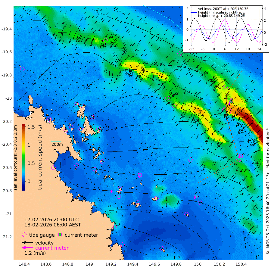 27cm/s 173T +10cm/s rms + 2cm/s 5T. Brampton I 18m 26cm/s -176T +9cm/s rms + 6cm/s 66T. Wigton I 38m 31cm/s -147T +7cm/s rms + 8cm/s 141T. Tern I 47m 51cm/s -151T +7cm/s rms + 12cm/s 54T. N Bugatti Rf 64m 50cm/s -145T +3cm/s rms + 13cm/s 178T. W Bugatti Rf 70m 26cm/s -137T +3cm/s rms + 3cm/s -130T. Creal Rf 69m -48cm Holbourne I -169cm Tern I -65cm Bugatti Rf -112cm Creal Rf -31cm White Tip I -40cm Wallaby Reef -27cm Kennedy Reef -4cm Unnamed Reef No. 2 -89cm Tideway Reef -74cm Hayman Island -129cm Square Reef -73cm Double Bay -93cm Molle Island -110cm Cid Harbour -79cm Hook Island -105cm Border Island -112cm Haslewood Island -107cm Shute Harbour -147cm Thomas Island -146cm Credlin Reef -158cm East Repulse Island -169cm Blacksmith Island -183cm Laguna Quays -163cm Carlisle Island (Off) -199cm St. Bees Island -177cm Scawfell Island -180cm Penrith Island -208cm Mackay Outer Harbour -221cm Hay Point -216cm Prudhoe Island