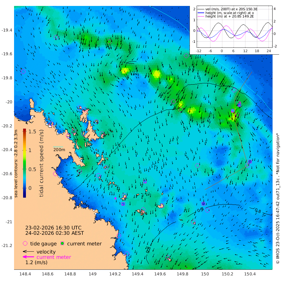 12cm/s -124T +10cm/s rms + 2cm/s 5T. Brampton I 18m 16cm/s 173T +9cm/s rms + 6cm/s 66T. Wigton I 38m 4cm/s -42T +7cm/s rms + 8cm/s 141T. Tern I 47m 12cm/s 177T +7cm/s rms + 12cm/s 54T. N Bugatti Rf 64m 21cm/s -145T +3cm/s rms + 13cm/s 178T. W Bugatti Rf 70m 6cm/s 157T +3cm/s rms + 3cm/s -130T. Creal Rf 69m 58cm Holbourne I 109cm Tern I 65cm Bugatti Rf 80cm Creal Rf 56cm White Tip I 50cm Wallaby Reef 57cm Kennedy Reef 56cm Unnamed Reef No. 2 64cm Tideway Reef 68cm Hayman Island 71cm Square Reef 73cm Double Bay 71cm Molle Island 74cm Cid Harbour 70cm Hook Island 68cm Border Island 70cm Haslewood Island 74cm Shute Harbour 85cm Thomas Island 98cm Credlin Reef 101cm East Repulse Island 93cm Blacksmith Island 92cm Laguna Quays 105cm Carlisle Island (Off) 114cm St. Bees Island 96cm Scawfell Island 112cm Penrith Island 117cm Mackay Outer Harbour 127cm Hay Point 119cm Prudhoe Island
