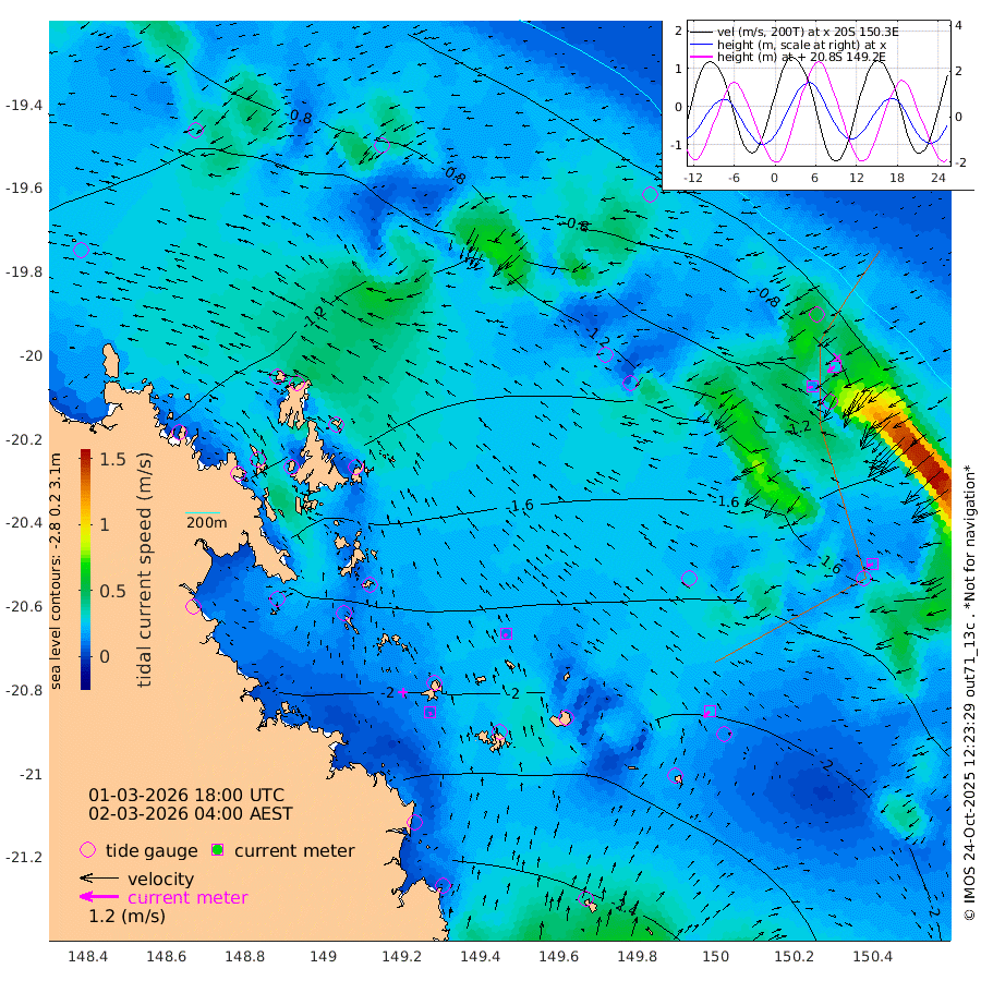 9cm/s 173T +10cm/s rms + 2cm/s 5T. Brampton I 18m 10cm/s -129T +9cm/s rms + 6cm/s 66T. Wigton I 38m 26cm/s -140T +7cm/s rms + 8cm/s 141T. Tern I 47m 28cm/s -127T +7cm/s rms + 12cm/s 54T. N Bugatti Rf 64m 13cm/s -107T +3cm/s rms + 13cm/s 178T. W Bugatti Rf 70m 18cm/s -102T +3cm/s rms + 3cm/s -130T. Creal Rf 69m -111cm Holbourne I -230cm Tern I -116cm Bugatti Rf -162cm Creal Rf -83cm White Tip I -100cm Wallaby Reef -84cm Kennedy Reef -69cm Unnamed Reef No. 2 -148cm Tideway Reef -137cm Hayman Island -189cm Square Reef -141cm Double Bay -152cm Molle Island -168cm Cid Harbour -139cm Hook Island -154cm Border Island -167cm Haslewood Island -166cm Shute Harbour -199cm Thomas Island -212cm Credlin Reef -227cm East Repulse Island -213cm Blacksmith Island -229cm Laguna Quays -230cm Carlisle Island (Off) -257cm St. Bees Island -221cm Scawfell Island -235cm Penrith Island -259cm Mackay Outer Harbour -274cm Hay Point -275cm Prudhoe Island
