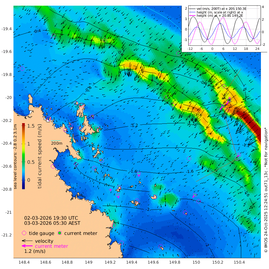 30cm/s 171T +10cm/s rms + 2cm/s 5T. Brampton I 18m 31cm/s -176T +9cm/s rms + 6cm/s 66T. Wigton I 38m 35cm/s -146T +7cm/s rms + 8cm/s 141T. Tern I 47m 56cm/s -149T +7cm/s rms + 12cm/s 54T. N Bugatti Rf 64m 54cm/s -141T +3cm/s rms + 13cm/s 178T. W Bugatti Rf 70m 28cm/s -135T +3cm/s rms + 3cm/s -130T. Creal Rf 69m -62cm Holbourne I -192cm Tern I -77cm Bugatti Rf -127cm Creal Rf -40cm White Tip I -52cm Wallaby Reef -34cm Kennedy Reef -18cm Unnamed Reef No. 2 -110cm Tideway Reef -89cm Hayman Island -146cm Square Reef -96cm Double Bay -111cm Molle Island -129cm Cid Harbour -100cm Hook Island -120cm Border Island -135cm Haslewood Island -128cm Shute Harbour -171cm Thomas Island -173cm Credlin Reef -197cm East Repulse Island -185cm Blacksmith Island -209cm Laguna Quays -198cm Carlisle Island (Off) -228cm St. Bees Island -192cm Scawfell Island -197cm Penrith Island -235cm Mackay Outer Harbour -248cm Hay Point -242cm Prudhoe Island