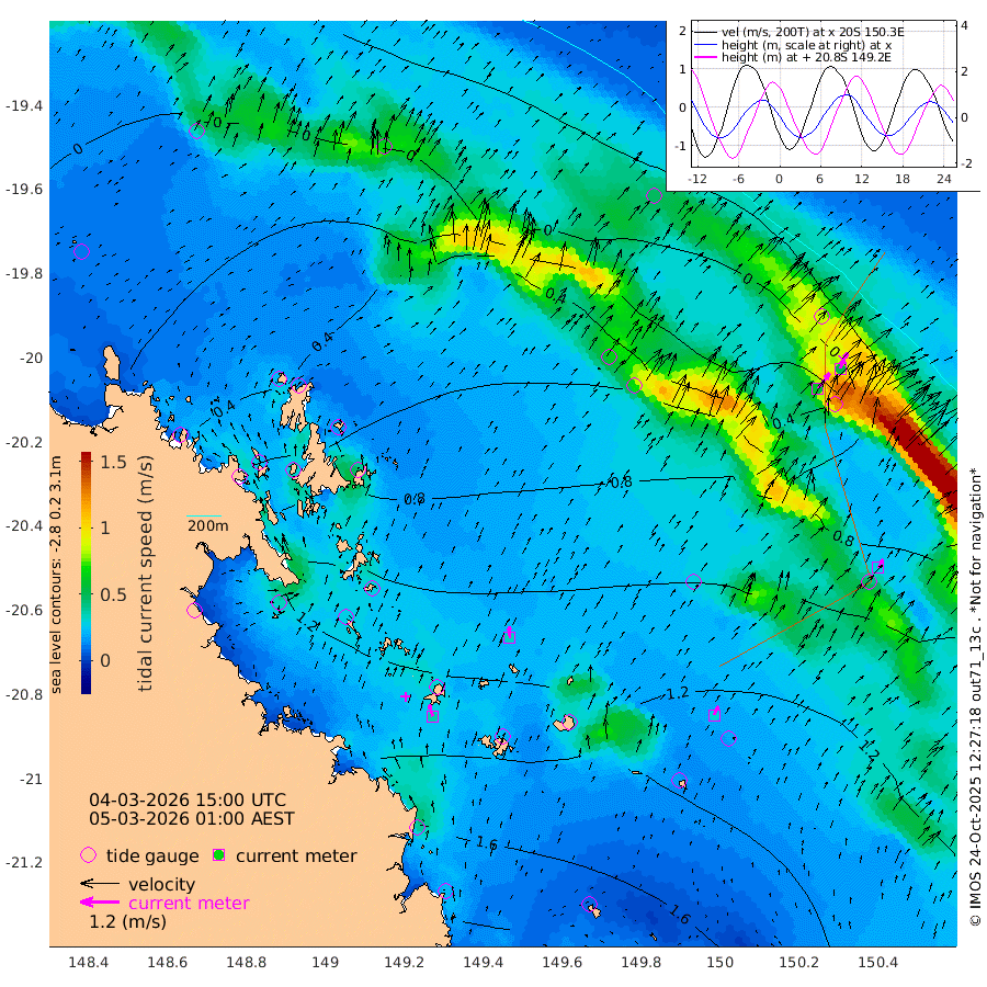 37cm/s -18T +10cm/s rms + 2cm/s 5T. Brampton I 18m 35cm/s -4T +9cm/s rms + 6cm/s 66T. Wigton I 38m 30cm/s 28T +7cm/s rms + 8cm/s 141T. Tern I 47m 53cm/s 24T +7cm/s rms + 12cm/s 54T. N Bugatti Rf 64m 59cm/s 37T +3cm/s rms + 13cm/s 178T. W Bugatti Rf 70m 29cm/s 29T +3cm/s rms + 3cm/s -130T. Creal Rf 69m 19cm Holbourne I 128cm Tern I 36cm Bugatti Rf 78cm Creal Rf 7cm White Tip I 10cm Wallaby Reef 1cm Kennedy Reef -12cm Unnamed Reef No. 2 60cm Tideway Reef 40cm Hayman Island 78cm Square Reef 54cm Double Bay 65cm Molle Island 73cm Cid Harbour 56cm Hook Island 67cm Border Island 80cm Haslewood Island 77cm Shute Harbour 118cm Thomas Island 109cm Credlin Reef 137cm East Repulse Island 126cm Blacksmith Island 149cm Laguna Quays 132cm Carlisle Island (Off) 155cm St. Bees Island 125cm Scawfell Island 130cm Penrith Island 172cm Mackay Outer Harbour 182cm Hay Point 173cm Prudhoe Island