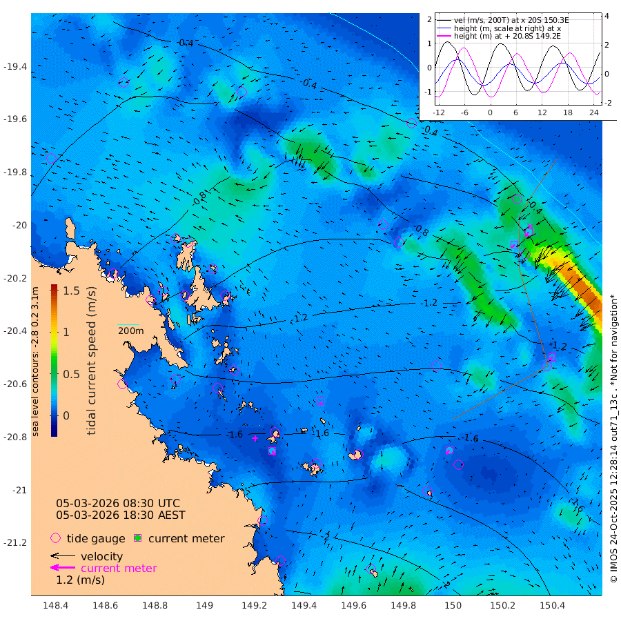 22cm/s 153T +10cm/s rms + 2cm/s 5T. Brampton I 18m 13cm/s -171T +9cm/s rms + 6cm/s 66T. Wigton I 38m 23cm/s -149T +7cm/s rms + 8cm/s 141T. Tern I 47m 28cm/s -147T +7cm/s rms + 12cm/s 54T. N Bugatti Rf 64m 24cm/s -133T +3cm/s rms + 13cm/s 178T. W Bugatti Rf 70m 18cm/s -131T +3cm/s rms + 3cm/s -130T. Creal Rf 69m -74cm Holbourne I -187cm Tern I -85cm Bugatti Rf -128cm Creal Rf -56cm White Tip I -58cm Wallaby Reef -51cm Kennedy Reef -40cm Unnamed Reef No. 2 -104cm Tideway Reef -92cm Hayman Island -133cm Square Reef -108cm Double Bay -120cm Molle Island -116cm Cid Harbour -104cm Hook Island -106cm Border Island -120cm Haslewood Island -122cm Shute Harbour -160cm Thomas Island -157cm Credlin Reef -173cm East Repulse Island -165cm Blacksmith Island -187cm Laguna Quays -176cm Carlisle Island (Off) -195cm St. Bees Island -166cm Scawfell Island -188cm Penrith Island -220cm Mackay Outer Harbour -234cm Hay Point -235cm Prudhoe Island