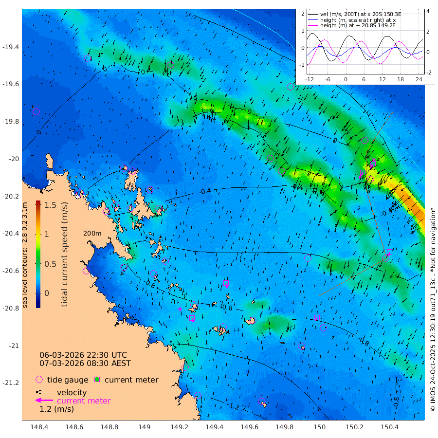 29cm/s 161T +10cm/s rms + 2cm/s 5T. Brampton I 18m 32cm/s 172T +9cm/s rms + 6cm/s 66T. Wigton I 38m 22cm/s -161T +7cm/s rms + 8cm/s 141T. Tern I 47m 43cm/s -158T +7cm/s rms + 12cm/s 54T. N Bugatti Rf 64m 47cm/s -147T +3cm/s rms + 13cm/s 178T. W Bugatti Rf 70m 24cm/s -163T +3cm/s rms + 3cm/s -130T. Creal Rf 69m -8cm Holbourne I -70cm Tern I -15cm Bugatti Rf -41cm Creal Rf 3cm White Tip I 6cm Wallaby Reef 12cm Kennedy Reef 16cm Unnamed Reef No. 2 -28cm Tideway Reef -14cm Hayman Island -36cm Square Reef -41cm Double Bay -33cm Molle Island -27cm Cid Harbour -34cm Hook Island -33cm Border Island -39cm Haslewood Island -39cm Shute Harbour -64cm Thomas Island -56cm Credlin Reef -75cm East Repulse Island -61cm Blacksmith Island -88cm Laguna Quays -75cm Carlisle Island (Off) -90cm St. Bees Island -71cm Scawfell Island -68cm Penrith Island -101cm Mackay Outer Harbour -107cm Hay Point -105cm Prudhoe Island