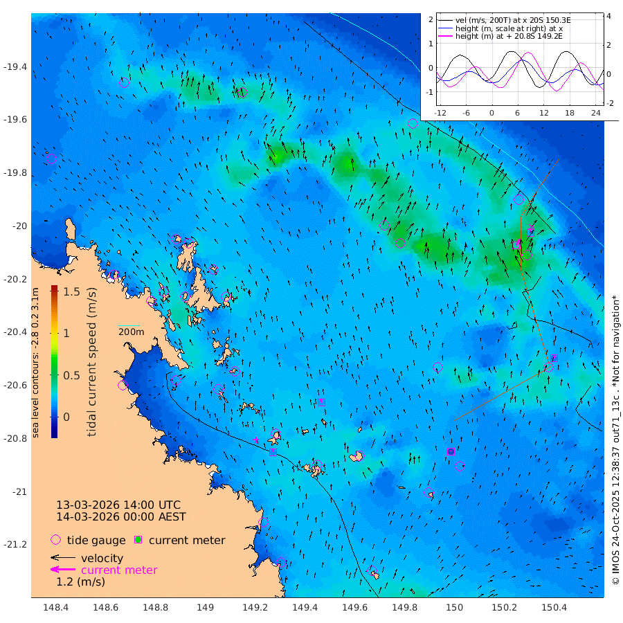 14cm/s -6T +10cm/s rms + 2cm/s 5T. Brampton I 18m 16cm/s -20T +9cm/s rms + 6cm/s 66T. Wigton I 38m 4cm/s 24T +7cm/s rms + 8cm/s 141T. Tern I 47m 20cm/s -2T +7cm/s rms + 12cm/s 54T. N Bugatti Rf 64m 35cm/s 31T +3cm/s rms + 13cm/s 178T. W Bugatti Rf 70m 12cm/s 6T +3cm/s rms + 3cm/s -130T. Creal Rf 69m -74cm Holbourne I -75cm Tern I -57cm Bugatti Rf -59cm Creal Rf -57cm White Tip I -65cm Wallaby Reef -72cm Kennedy Reef -60cm Unnamed Reef No. 2 -63cm Tideway Reef -75cm Hayman Island -74cm Square Reef -71cm Double Bay -80cm Molle Island -68cm Cid Harbour -68cm Hook Island -65cm Border Island -59cm Haslewood Island -68cm Shute Harbour -61cm Thomas Island -69cm Credlin Reef -65cm East Repulse Island -68cm Blacksmith Island -65cm Laguna Quays -69cm Carlisle Island (Off) -70cm St. Bees Island -72cm Scawfell Island -80cm Penrith Island -70cm Mackay Outer Harbour -73cm Hay Point -73cm Prudhoe Island