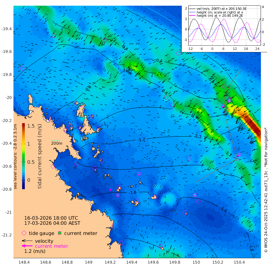 15cm/s 177T +10cm/s rms + 2cm/s 5T. Brampton I 18m 14cm/s -157T +9cm/s rms + 6cm/s 66T. Wigton I 38m 25cm/s -143T +7cm/s rms + 8cm/s 141T. Tern I 47m 32cm/s -140T +7cm/s rms + 12cm/s 54T. N Bugatti Rf 64m 22cm/s -136T +3cm/s rms + 13cm/s 178T. W Bugatti Rf 70m 19cm/s -119T +3cm/s rms + 3cm/s -130T. Creal Rf 69m -71cm Holbourne I -179cm Tern I -80cm Bugatti Rf -123cm Creal Rf -50cm White Tip I -61cm Wallaby Reef -50cm Kennedy Reef -28cm Unnamed Reef No. 2 -104cm Tideway Reef -94cm Hayman Island -145cm Square Reef -91cm Double Bay -104cm Molle Island -123cm Cid Harbour -94cm Hook Island -114cm Border Island -120cm Haslewood Island -120cm Shute Harbour -153cm Thomas Island -157cm Credlin Reef -162cm East Repulse Island -171cm Blacksmith Island -182cm Laguna Quays -167cm Carlisle Island (Off) -203cm St. Bees Island -181cm Scawfell Island -186cm Penrith Island -207cm Mackay Outer Harbour -220cm Hay Point -223cm Prudhoe Island