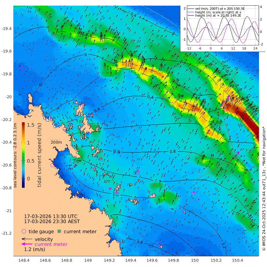 35cm/s -11T +10cm/s rms + 2cm/s 5T. Brampton I 18m 33cm/s -4T +9cm/s rms + 6cm/s 66T. Wigton I 38m 29cm/s 29T +7cm/s rms + 8cm/s 141T. Tern I 47m 51cm/s 24T +7cm/s rms + 12cm/s 54T. N Bugatti Rf 64m 61cm/s 37T +3cm/s rms + 13cm/s 178T. W Bugatti Rf 70m 29cm/s 29T +3cm/s rms + 3cm/s -130T. Creal Rf 69m 3cm Holbourne I 112cm Tern I 24cm Bugatti Rf 67cm Creal Rf -5cm White Tip I -3cm Wallaby Reef -11cm Kennedy Reef -31cm Unnamed Reef No. 2 42cm Tideway Reef 24cm Hayman Island 72cm Square Reef 26cm Double Bay 43cm Molle Island 56cm Cid Harbour 37cm Hook Island 52cm Border Island 59cm Haslewood Island 57cm Shute Harbour 99cm Thomas Island 87cm Credlin Reef 102cm East Repulse Island 110cm Blacksmith Island 129cm Laguna Quays 101cm Carlisle Island (Off) 134cm St. Bees Island 115cm Scawfell Island 116cm Penrith Island 150cm Mackay Outer Harbour 160cm Hay Point 159cm Prudhoe Island