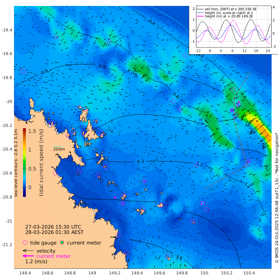 7cm/s -178T +10cm/s rms + 2cm/s 5T. Brampton I 18m 11cm/s -146T +9cm/s rms + 6cm/s 66T. Wigton I 38m 18cm/s -134T +7cm/s rms + 8cm/s 141T. Tern I 47m 19cm/s -124T +7cm/s rms + 12cm/s 54T. N Bugatti Rf 64m 7cm/s -76T +3cm/s rms + 13cm/s 178T. W Bugatti Rf 70m 12cm/s -98T +3cm/s rms + 3cm/s -130T. Creal Rf 69m -79cm Holbourne I -147cm Tern I -73cm Bugatti Rf -100cm Creal Rf -53cm White Tip I -74cm Wallaby Reef -61cm Kennedy Reef -47cm Unnamed Reef No. 2 -103cm Tideway Reef -100cm Hayman Island -127cm Square Reef -97cm Double Bay -110cm Molle Island -120cm Cid Harbour -93cm Hook Island -108cm Border Island -117cm Haslewood Island -116cm Shute Harbour -134cm Thomas Island -140cm Credlin Reef -158cm East Repulse Island -146cm Blacksmith Island -155cm Laguna Quays -155cm Carlisle Island (Off) -168cm St. Bees Island -148cm Scawfell Island -153cm Penrith Island -167cm Mackay Outer Harbour -176cm Hay Point -170cm Prudhoe Island