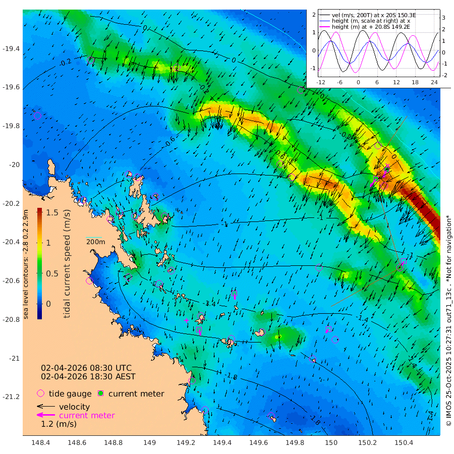 39cm/s 166T +10cm/s rms + 2cm/s 5T. Brampton I 18m 39cm/s 176T +9cm/s rms + 6cm/s 66T. Wigton I 38m 30cm/s -150T +7cm/s rms + 8cm/s 141T. Tern I 47m 59cm/s -158T +7cm/s rms + 12cm/s 54T. N Bugatti Rf 64m 65cm/s -143T +3cm/s rms + 13cm/s 178T. W Bugatti Rf 70m 30cm/s -152T +3cm/s rms + 3cm/s -130T. Creal Rf 69m -38cm Holbourne I -139cm Tern I -49cm Bugatti Rf -88cm Creal Rf -19cm White Tip I -26cm Wallaby Reef -9cm Kennedy Reef -1cm Unnamed Reef No. 2 -74cm Tideway Reef -53cm Hayman Island -96cm Square Reef -73cm Double Bay -93cm Molle Island -86cm Cid Harbour -70cm Hook Island -81cm Border Island -97cm Haslewood Island -92cm Shute Harbour -130cm Thomas Island -118cm Credlin Reef -146cm East Repulse Island -136cm Blacksmith Island -164cm Laguna Quays -145cm Carlisle Island (Off) -158cm St. Bees Island -135cm Scawfell Island -141cm Penrith Island -182cm Mackay Outer Harbour -191cm Hay Point -184cm Prudhoe Island