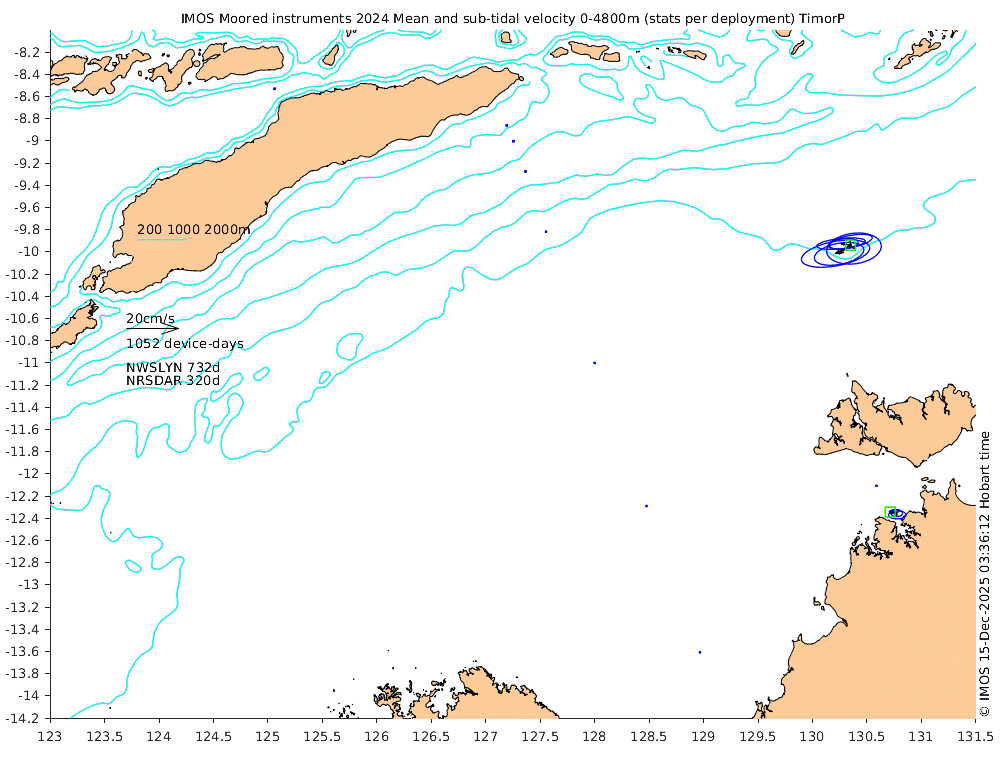 These maps show some basic analyses of the velocity data: mean (all-time in black and seasonal in colour) and sub-tidal variance for several layers and time-windows, and tidal harmonics for the depth-average velocity using the whole record. Click through to see more detailed plots of the selected dataset or to download those data from the AODN thredds server.