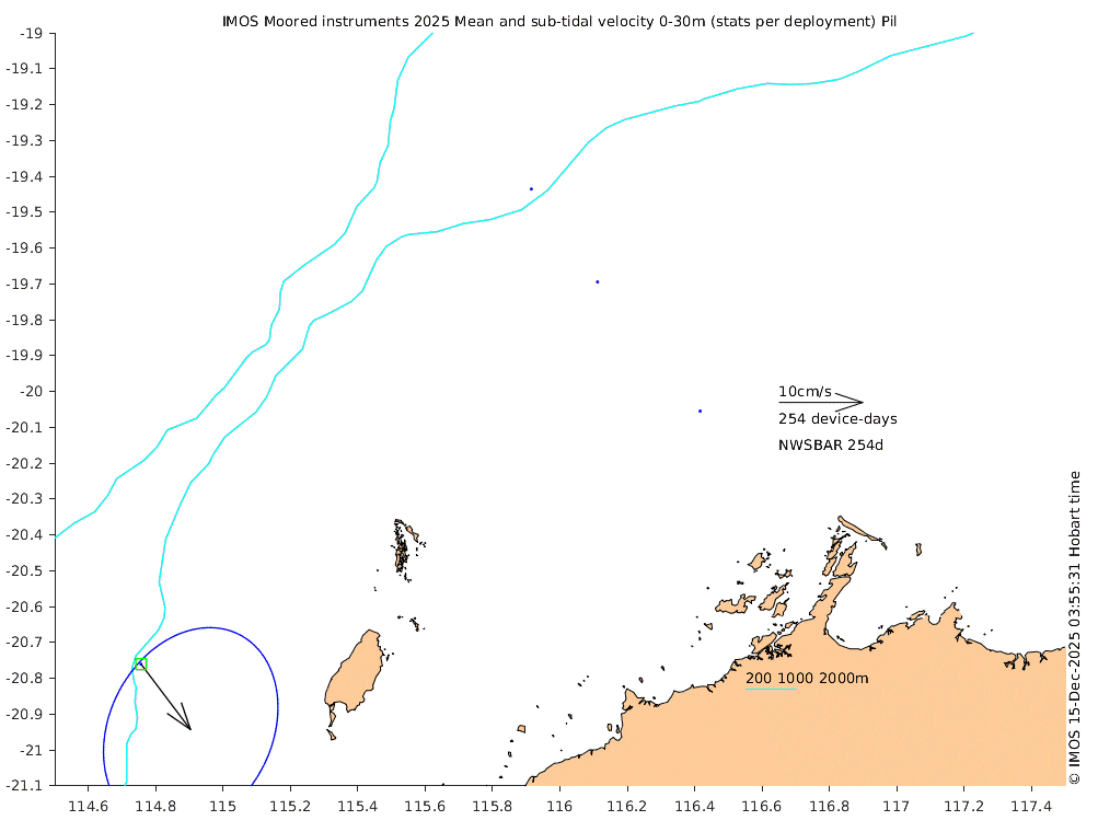 These maps show some basic analyses of the velocity data: mean (all-time in black and seasonal in colour) and sub-tidal variance for several layers and time-windows, and tidal harmonics for the depth-average velocity using the whole record. Click through to see more detailed plots of the selected dataset or to download those data from the AODN thredds server.