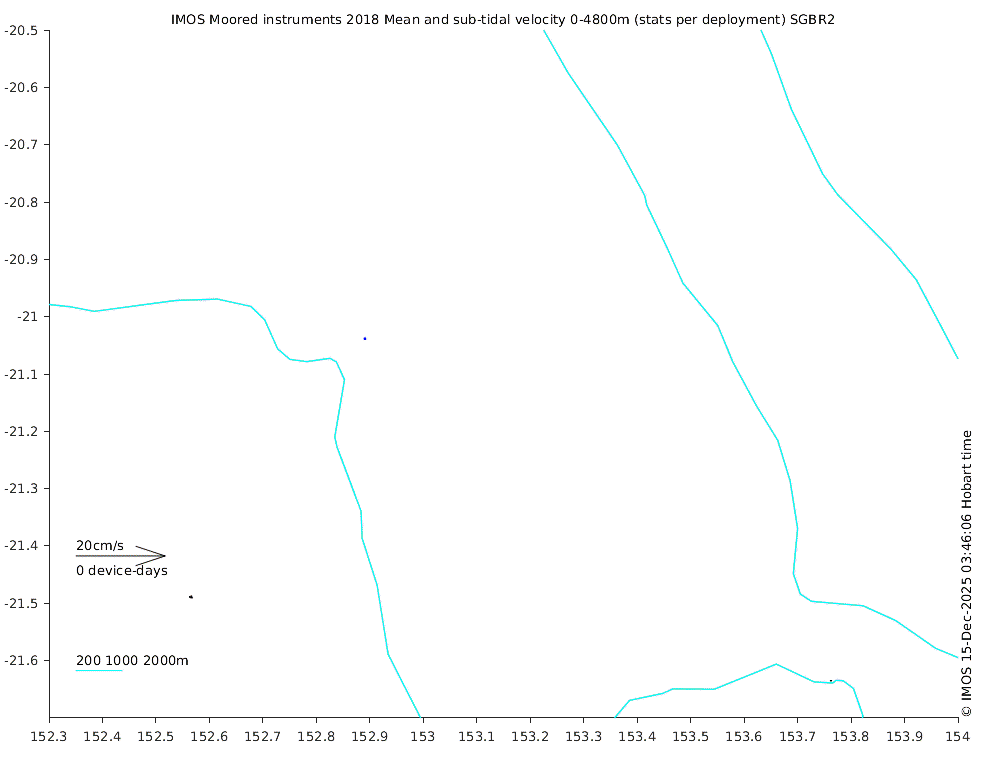 These maps show some basic analyses of the velocity data: mean (all-time in black and seasonal in colour) and sub-tidal variance for several layers and time-windows, and tidal harmonics for the depth-average velocity using the whole record. Click through to see more detailed plots of the selected dataset or to download those data from the AODN thredds server.