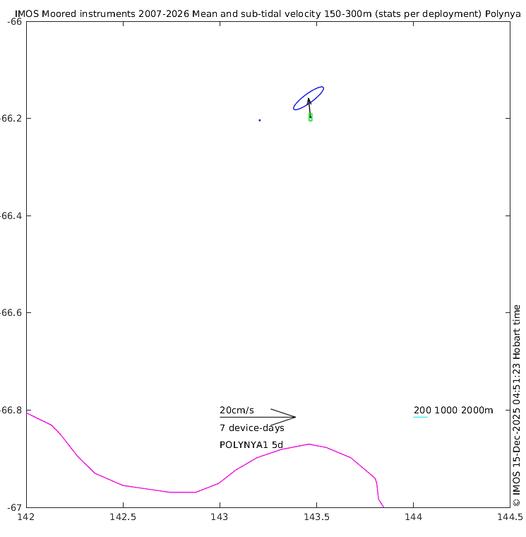 These maps show some basic analyses of the velocity data: mean (all-time in black and seasonal in colour) and sub-tidal variance for several layers and time-windows, and tidal harmonics for the depth-average velocity using the whole record. Click through to see more detailed plots of the selected dataset or to download those data from the AODN thredds server.