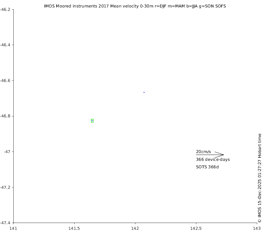 These maps show some basic analyses of the velocity data: mean (all-time in black and seasonal in colour) and sub-tidal variance for several layers and time-windows, and tidal harmonics for the depth-average velocity using the whole record. Click through to see more detailed plots of the selected dataset or to download those data from the AODN thredds server.